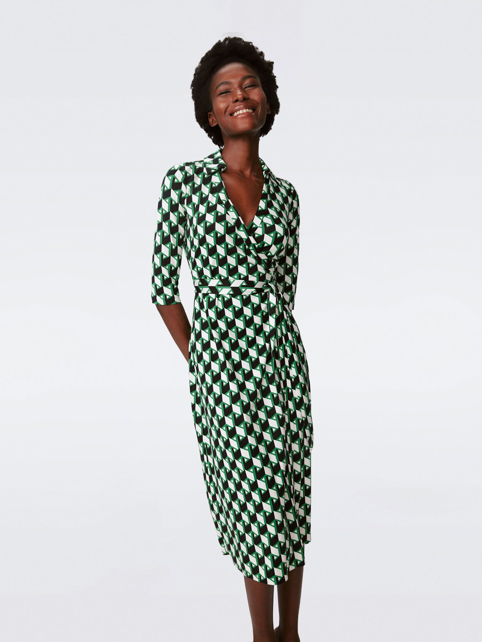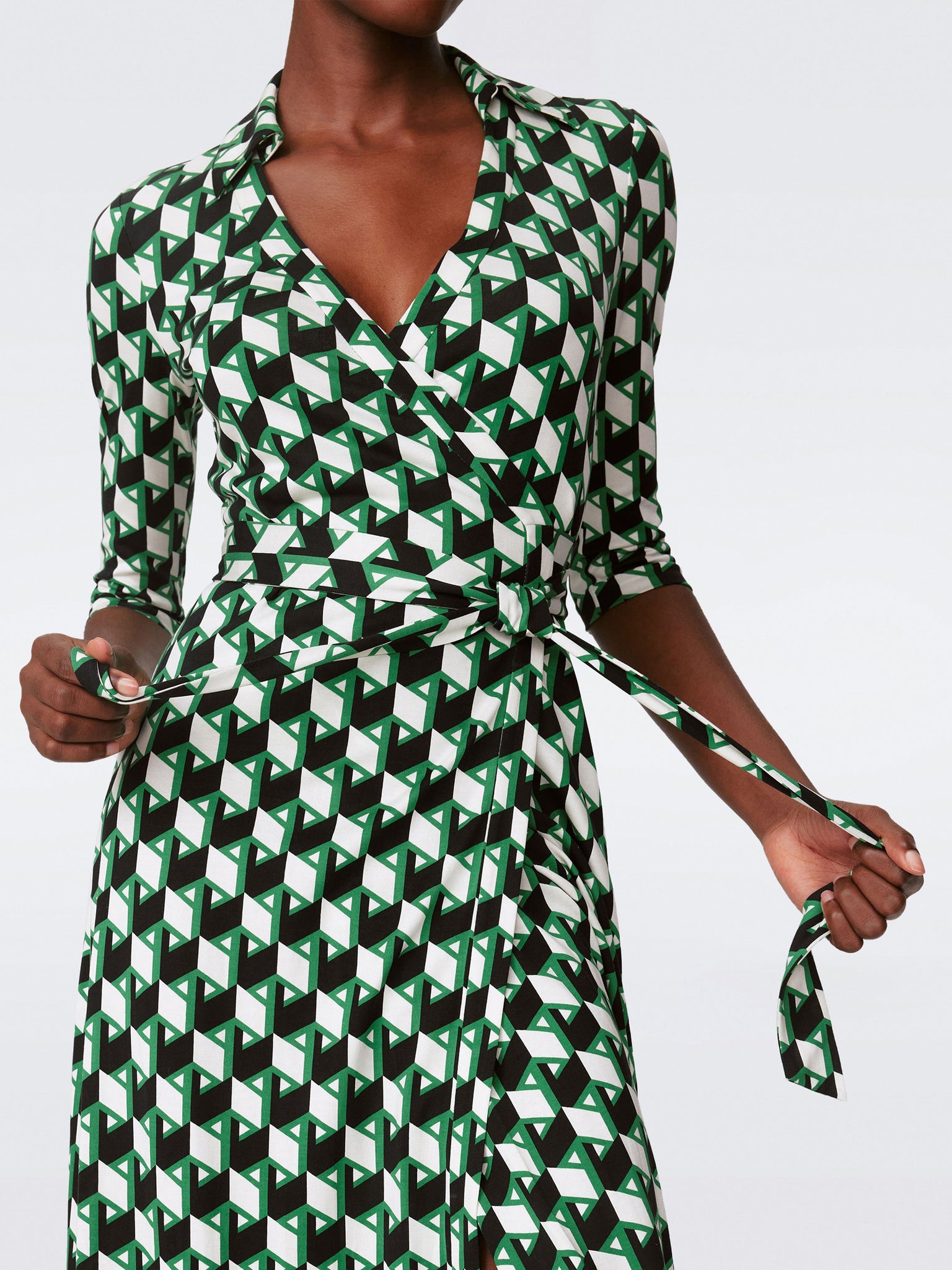One of our most popular wrap silhouettes, the Abigail is a timeless staple for any wardrobe. With a classic collar and three-quarter sleeves, this midi dress is cut from our signature silk jersey, which gives it a natural stretch and an extra soft feel.