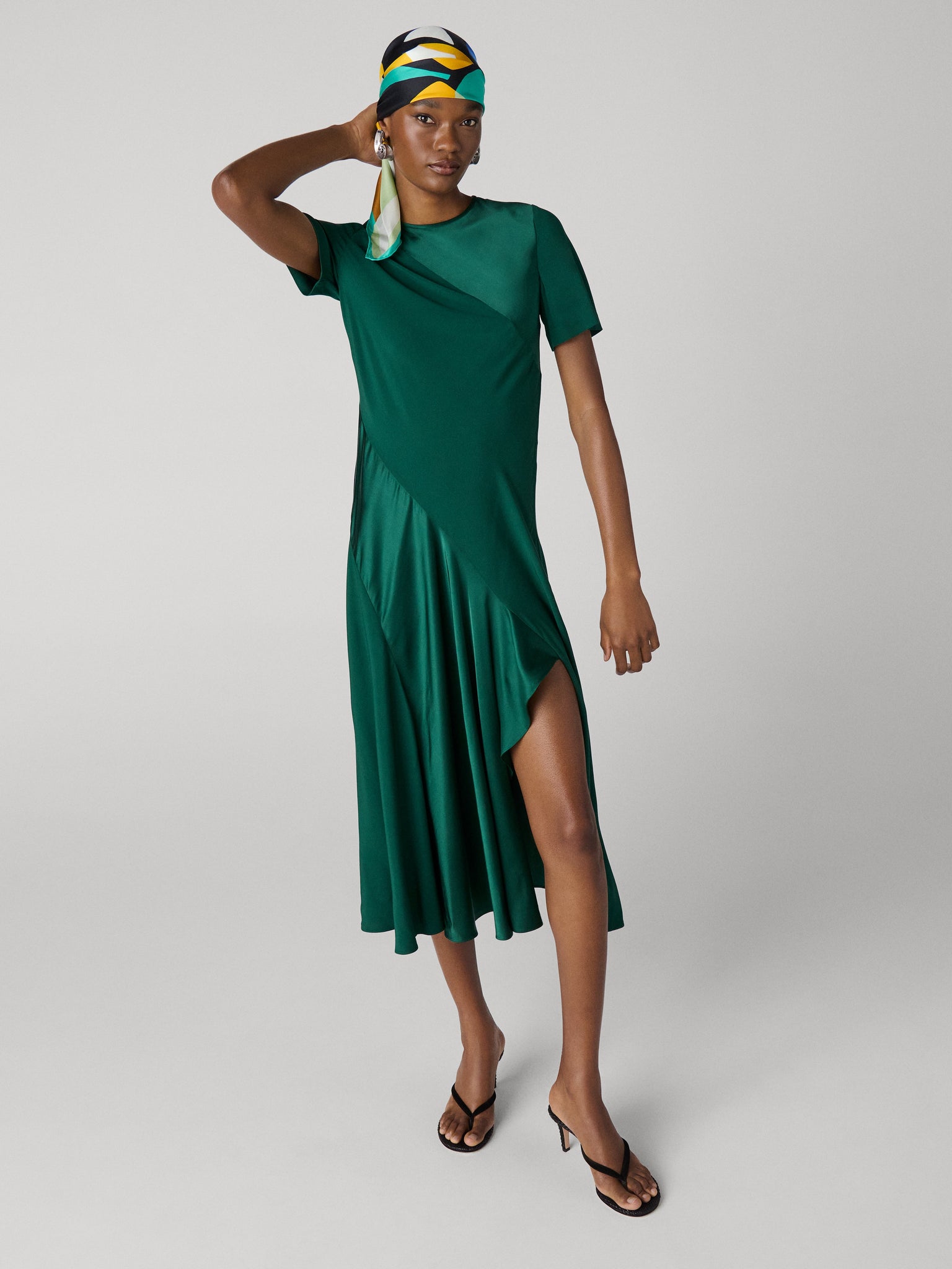 The Araminta Dress has a sophisticated asymmetrical design making it perfect for occasions.