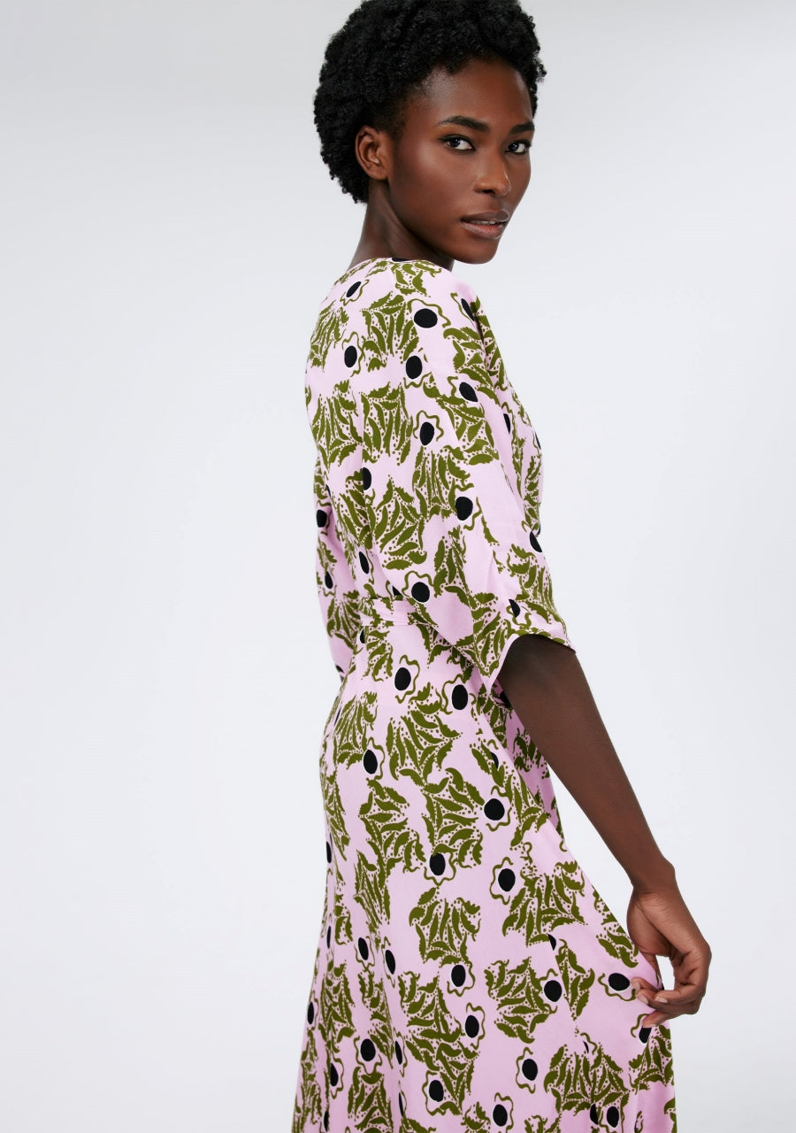 Eloise Faux-Wrap Maxi Dress in Olive Leaves Lavendar Pink