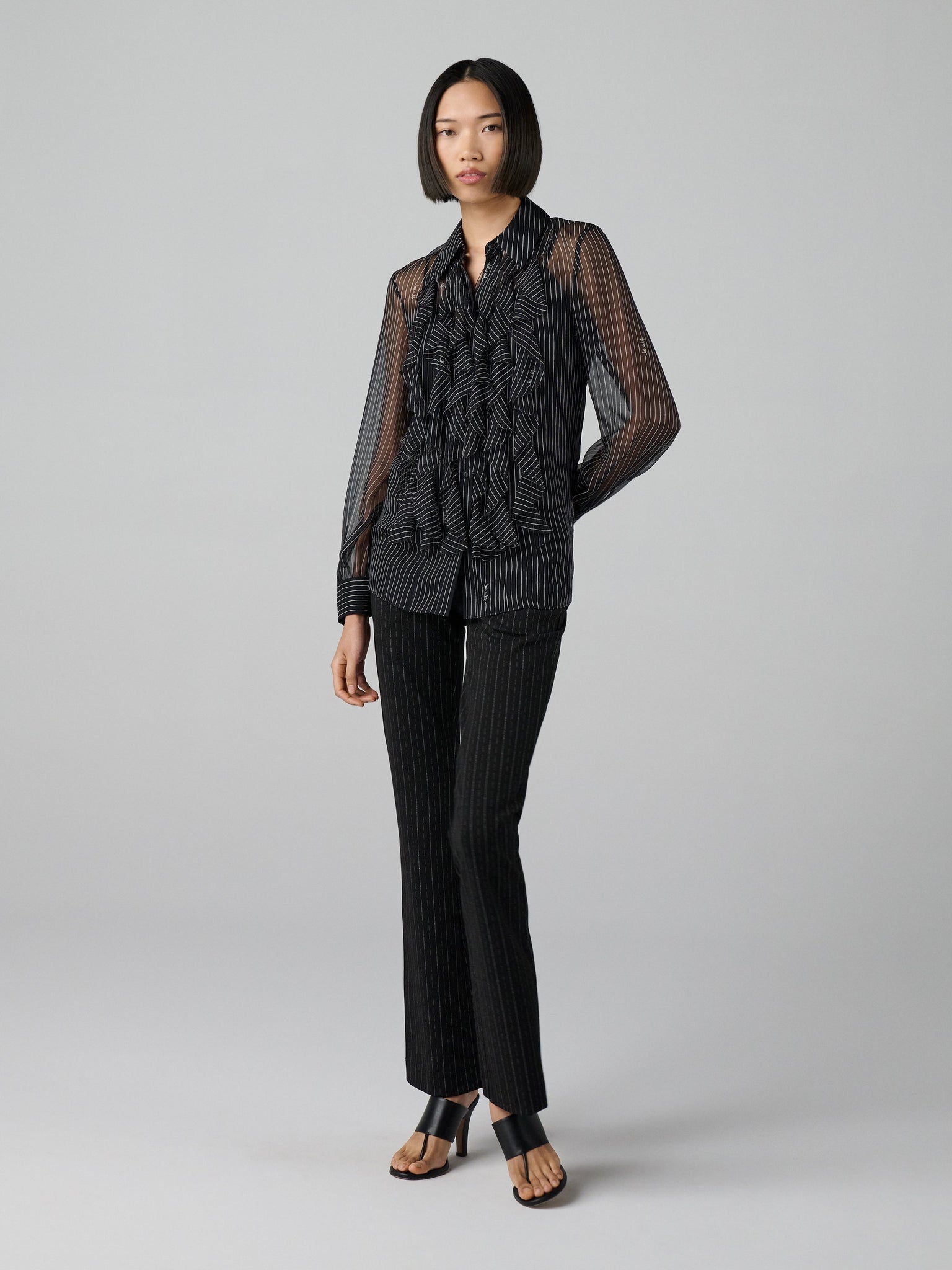 DVF	EVA BLOUSE	SIGNATURE PINSTRIPE BLACK