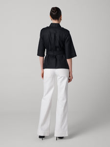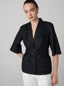 Crafted from a stretchy linen, the Shelby Jacket has a comfortable feel and a workwear-inspired look.