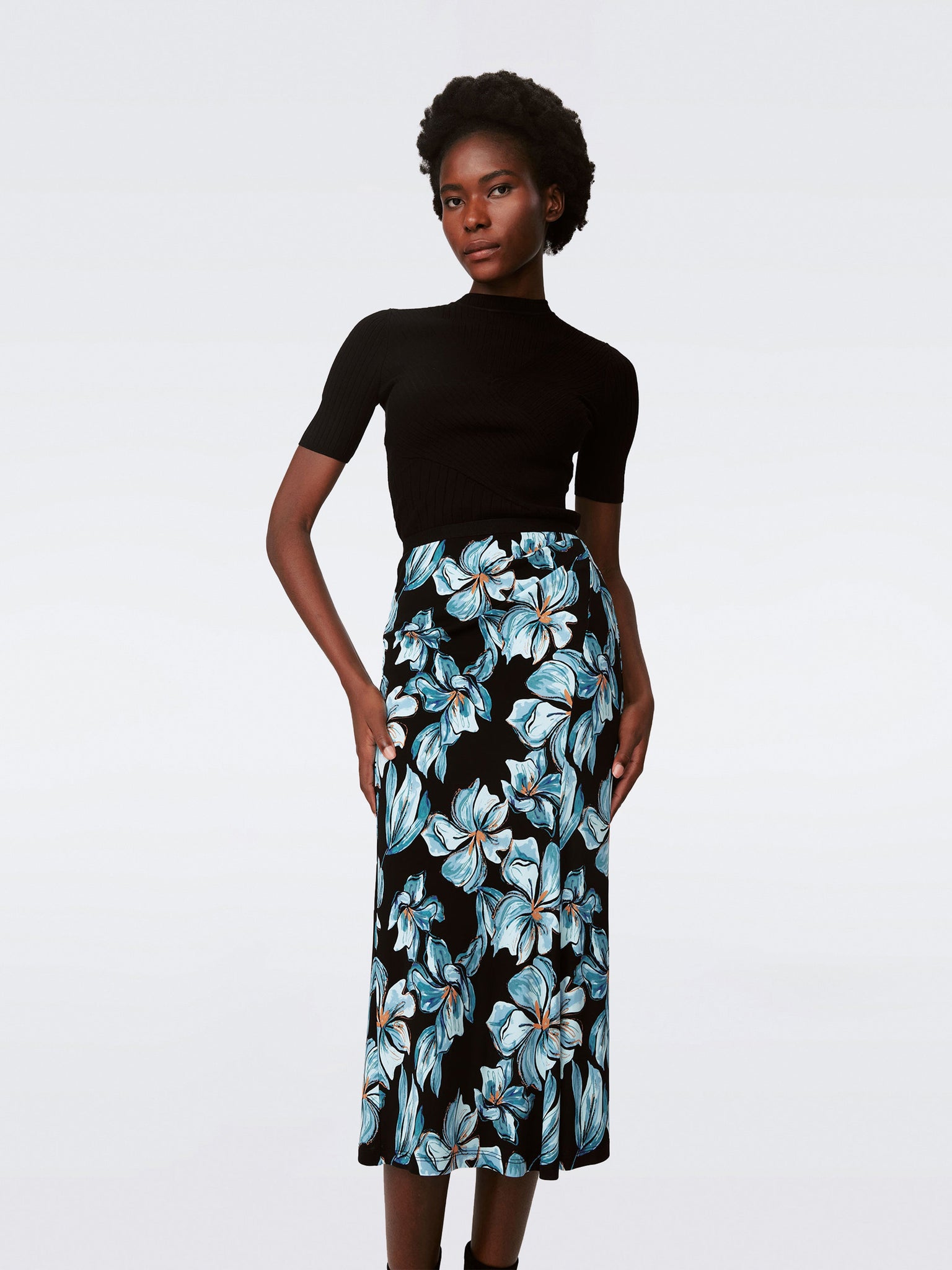Cut from a matte jersey, the Whitley skirt has a smooth look and feel. This piece sits at the waist with flattering gathering and falls at around the mid-calf.