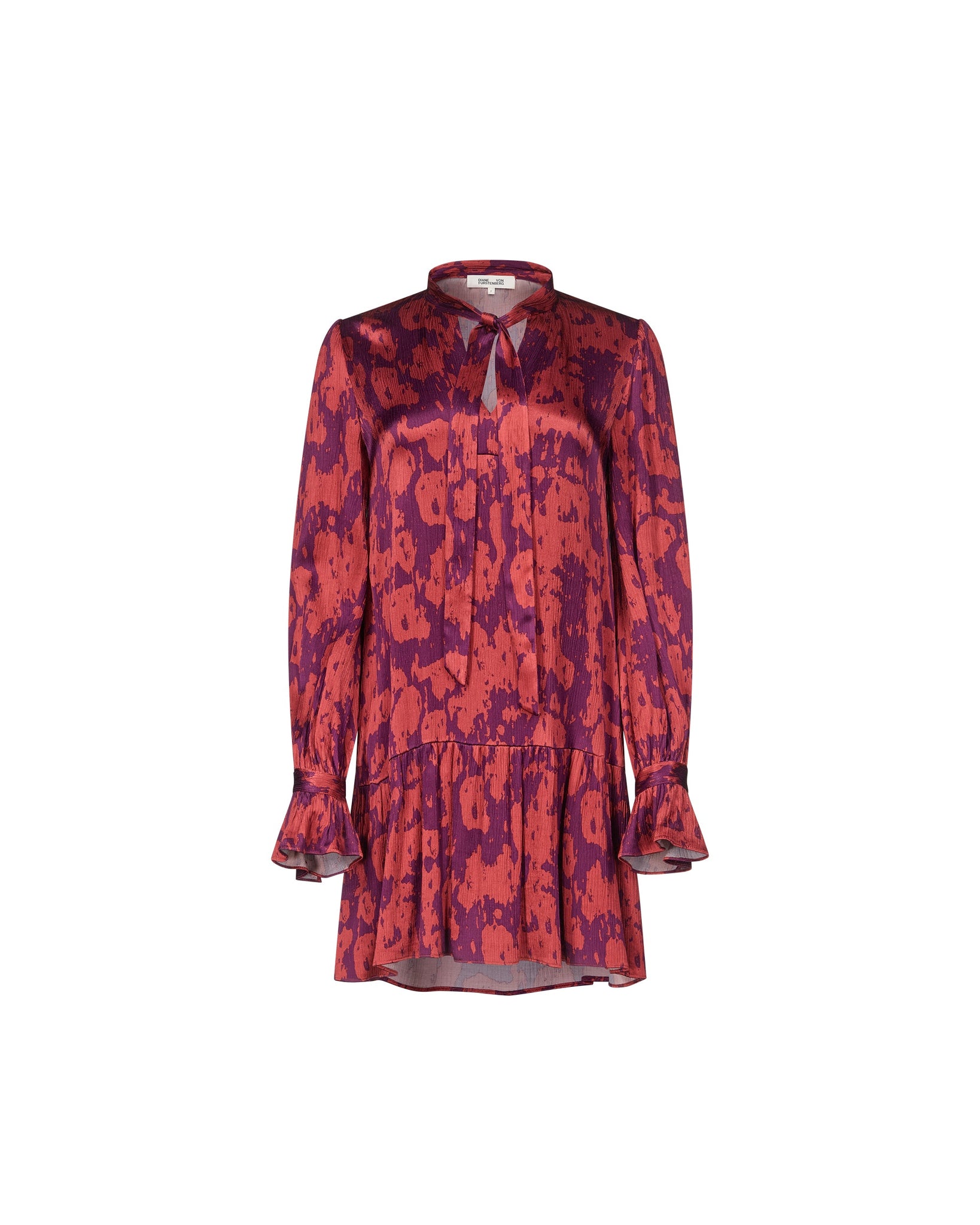 Crafted from lightly textured satin with a subtle sheen, the Yvonne Dress is a shift silhouette finished with a flirty necktie.
