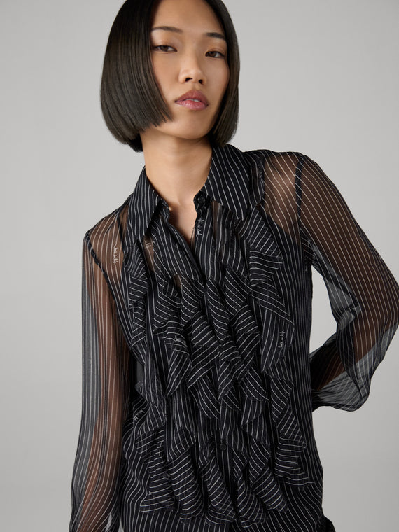 DVF EVA BLOUSE SIGNATURE PINSTRIPE BLACK