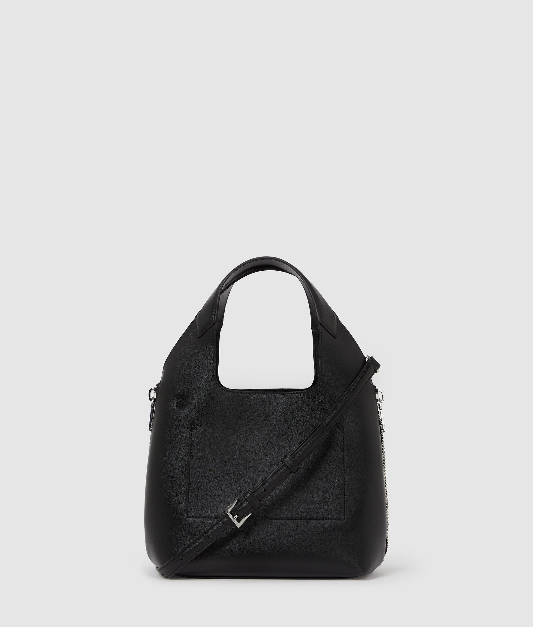 Edgy zip accents and suede details add a touch of attitude to this small tote bag. A magnetic closure keeps essentials secure, while twin handles and a detachable crossbody strap allow you to switch up your style.