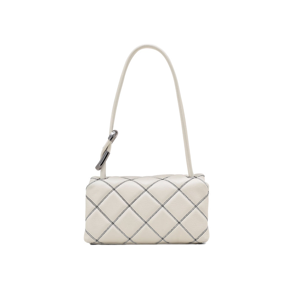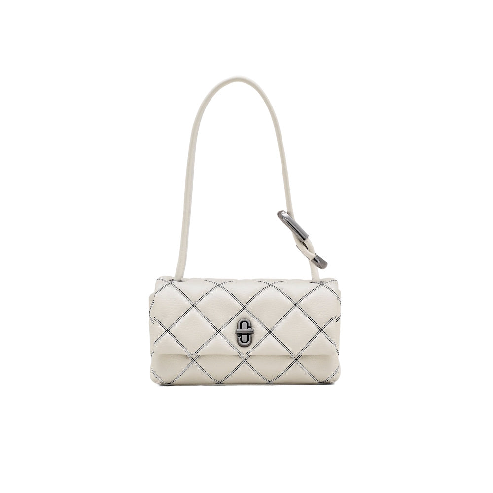 This elevated silhouette is crafted in smooth leather with distinctive Dual hardware. Featuring quilted leather, contrast black stitching, a gunmetal turnlock closure and tubular leather straps for hand-held or over-the-shoulder styling. Its compact design includes an interior zip pocket for effortless organization- perfect for seamless day-to-night styling.