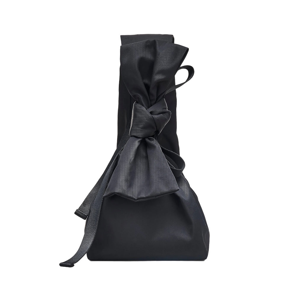 A bold update to our iconic Sack, this style features an oversized bow for an everyday statement. Crafted in durable nylon for a collapsible, yet distinctive shape, it offers easy versatility with two ways to carry. A seamless magnetic closure, interior slip pocket and a clip-in nylon pouch keep essentials organized and secure, while embroidered tonal branding adds a signature touch.