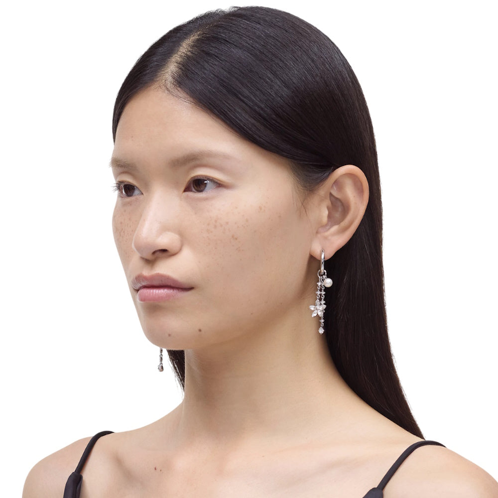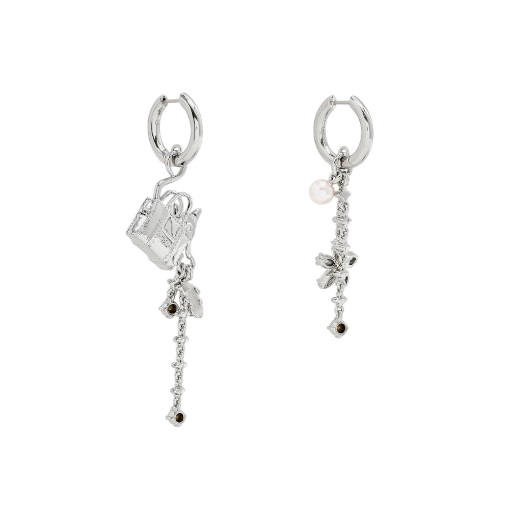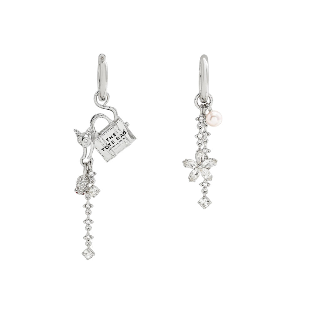 Asymmetrical drop earrings with seasonal motifs inspired by archives. The new "Cats Out of the Ring" series features glittering crystal parts, pearl design charms, and faithfully reproduced tote bag charms. The hoop fastener makes it easy to use and useful for everyday use.