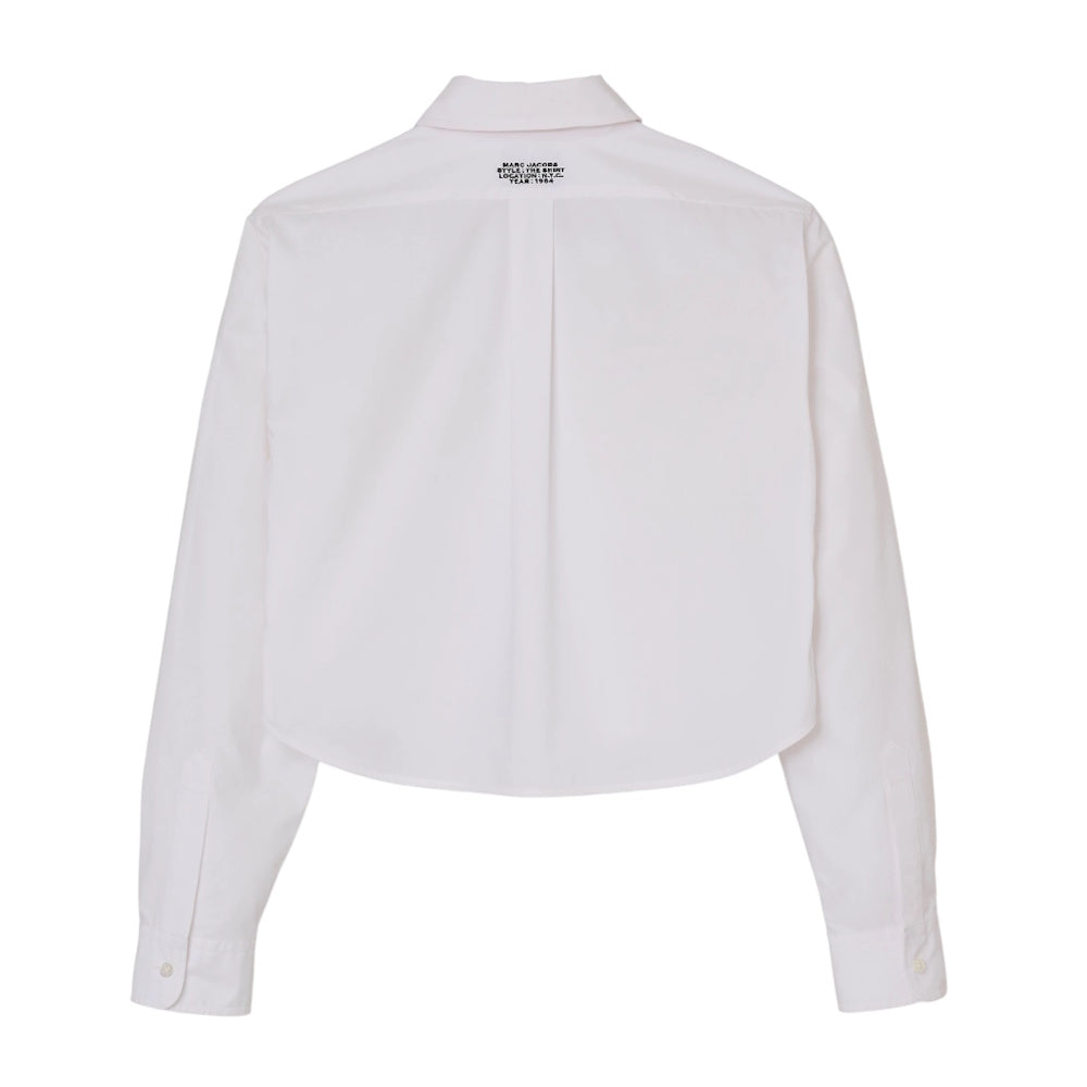 A notably feminine button-down shirt crafted from 100% cotton, this cropped silhouette features mother-of-pearl button closures, meticulous pleated detailing and a shirttail hem. A high-style reimagination of a classic essential, this shirt features our namesake branding on the chest pocket.