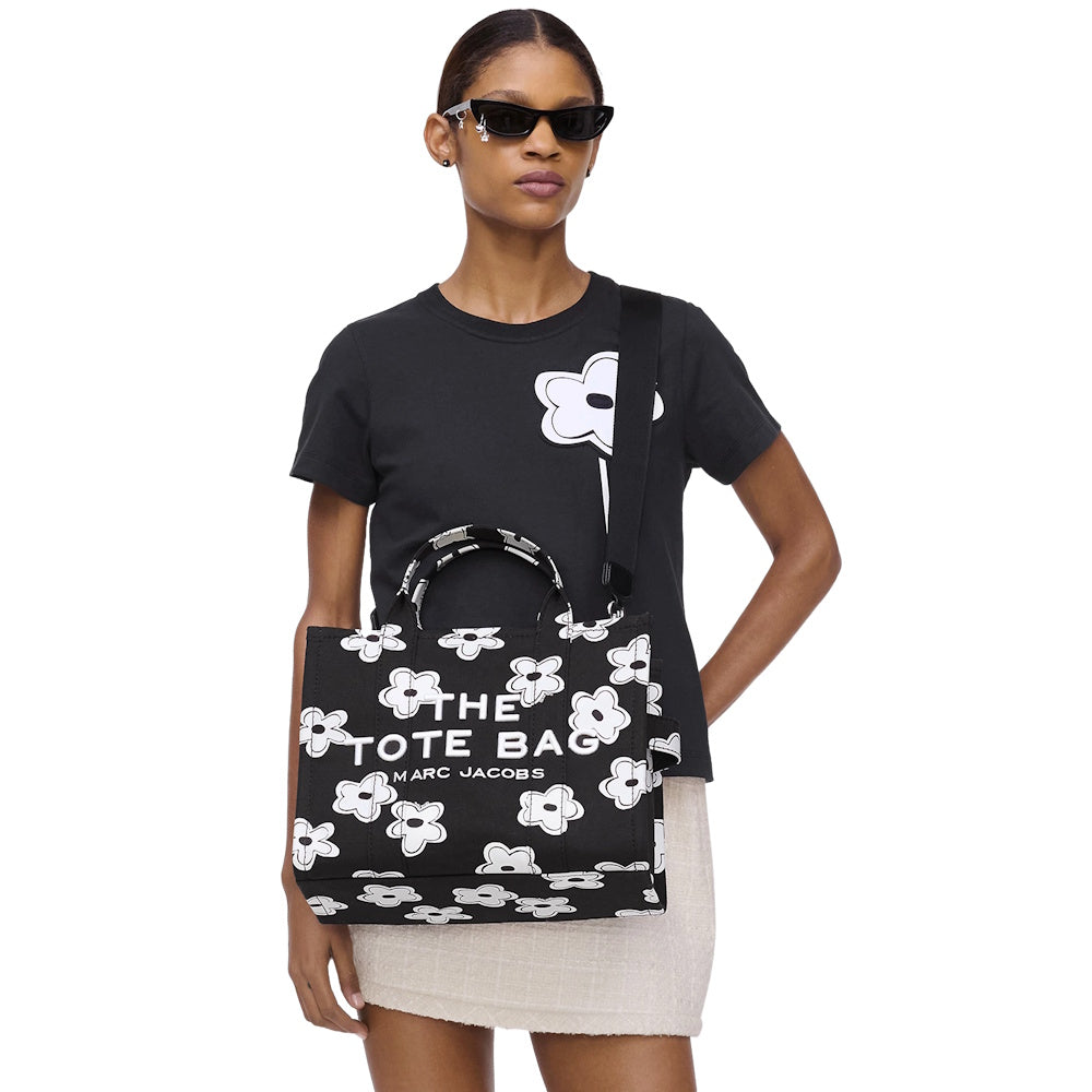 An iconic Marc Jacobs silhouette, rediscover the coveted Medium Tote Bag in our bestselling canvas fabrication, decorated with screen printed daisies for a quintessential Marc Jacobs touch. Featuring our signature embroidered namesake branding and a refined top-zip closure, this everyday essential can be carried by canvas top handle, or attach the adjustable webbing strap for effortlessly chic crossbody styling.