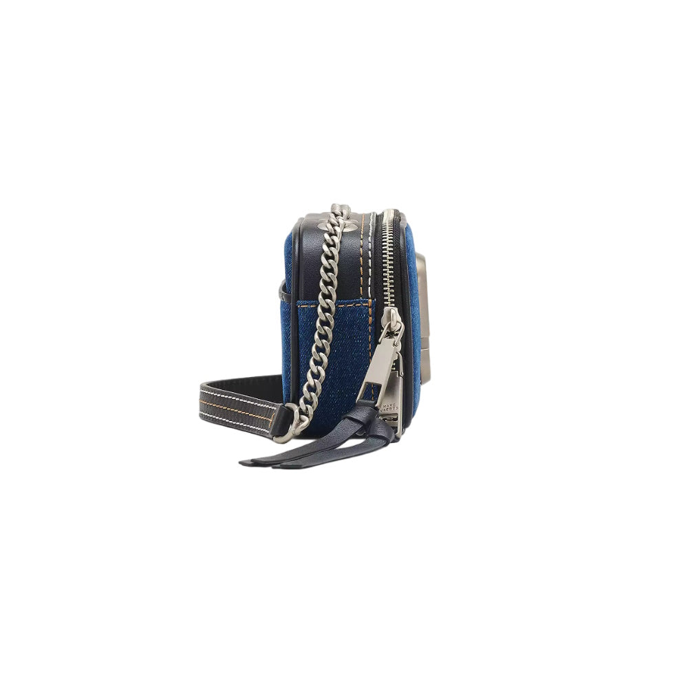 An archival runway piece turned cult-favorite, this sleek and iconic Snapshot bag in luxe structured denim features one zip-top compartment, our signature J marc hardware seal and an elegant pull-through chain strap for elevated crossbody styling.
