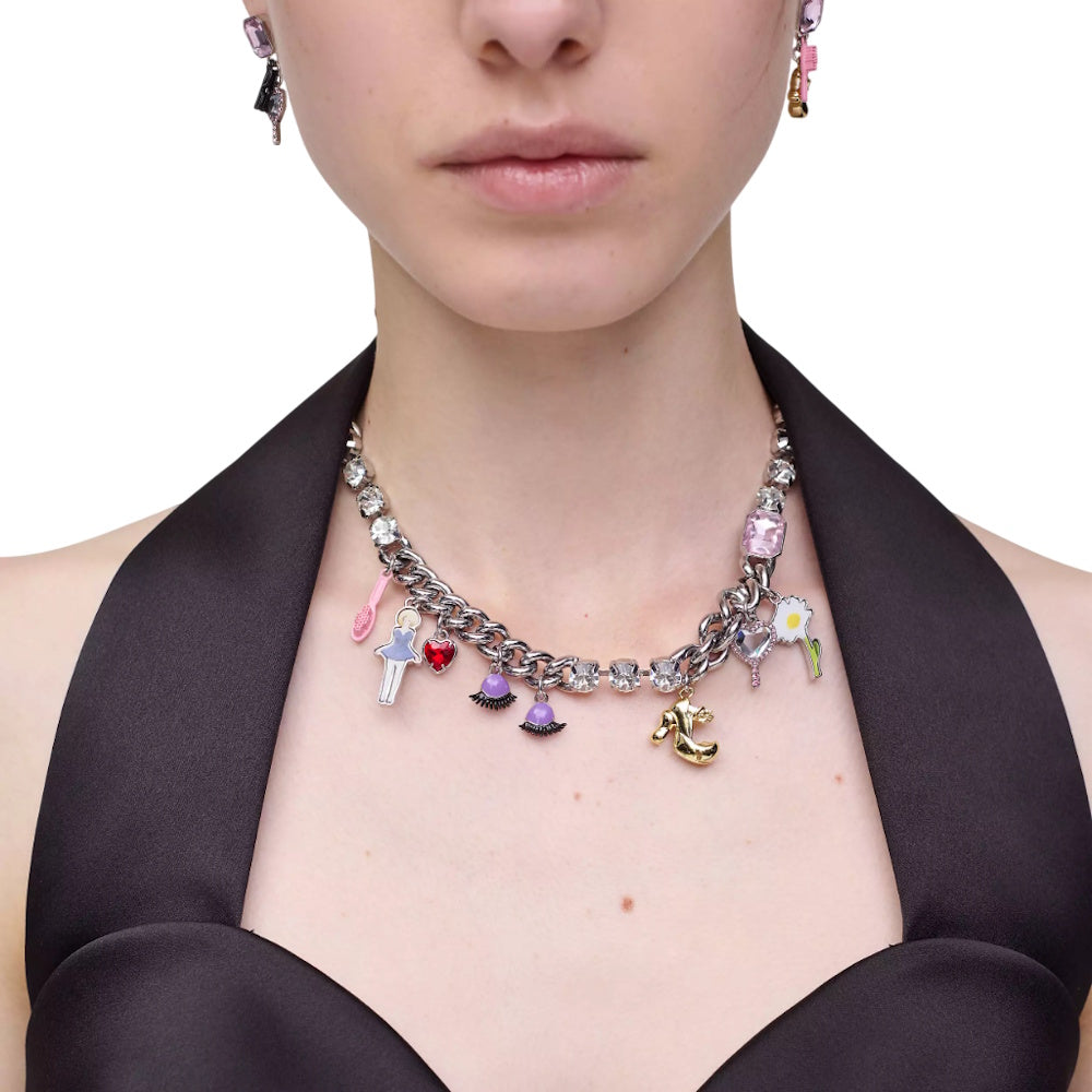 Inspired by the Spring ’24 runway, the Dollhouse Charm Necklace pairs oversized chain links with dollhouse-inspired charms that echo Marc’s love of playful proportions. Bold yet lighthearted, it adds a statement-making twist to everyday looks with its unexpected mix of scale and whimsy. A strand of crystal accents is woven into the chain, adding texture and subtle shimmer.