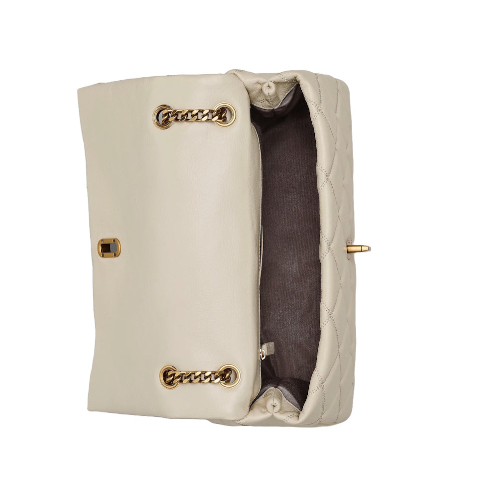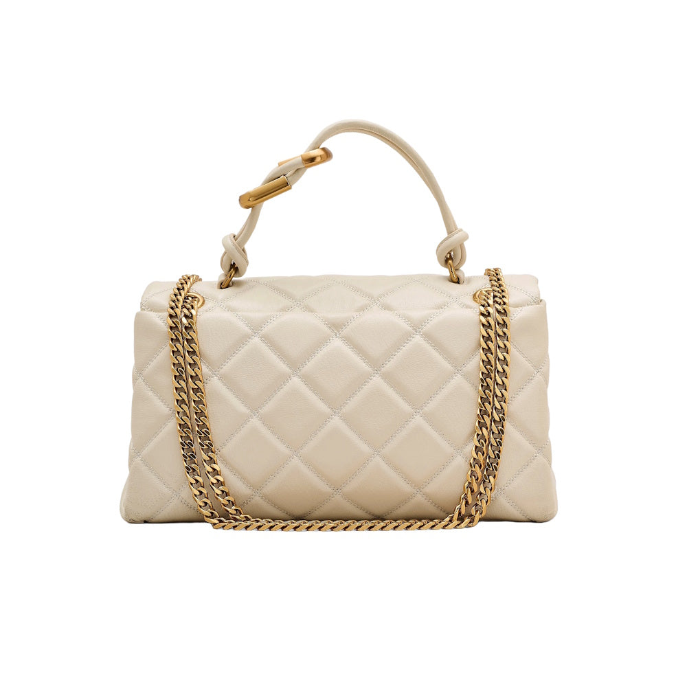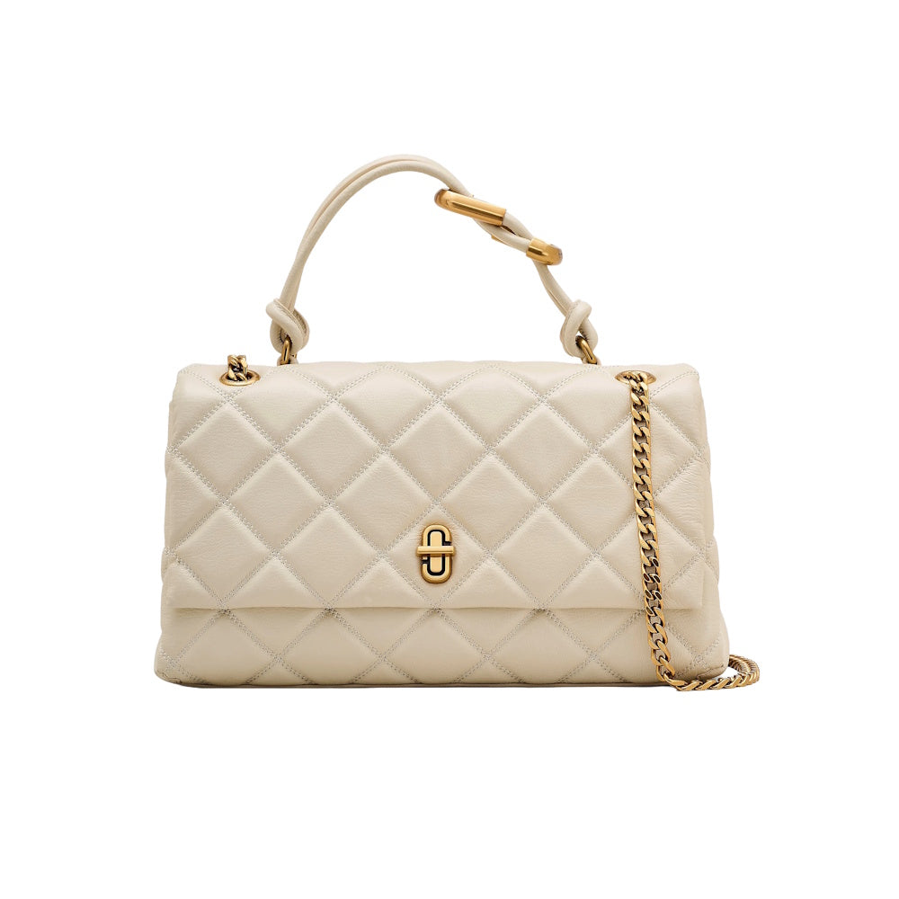 Luxuriously crafted in quilted full-grain leather for a Stam-inspired puffed texture, this freshly debuted instant-icon features a refined J Marc turn-lock closure, our handle-adorning signature Dual hardware and our iconically bold Dual silhouette. With a stitched leather top handle for hand-held styling and a pull-through chain strap for over the shoulder or crossbody styling, this true convertible essential can be effortlessly worn three ways.