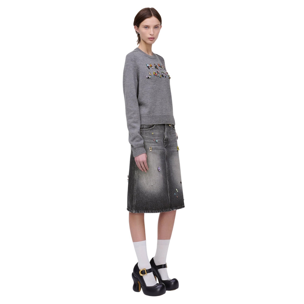 Artfully crafted using over 100 hand-applied crystals, this elevated everyday essential features a prominent multi-colored crystal iteration of our classic logo branding. A high-comfort silhouette in 100% wool, this runway-inspired sweater has a relaxed fit for effortlessly chic wearability.