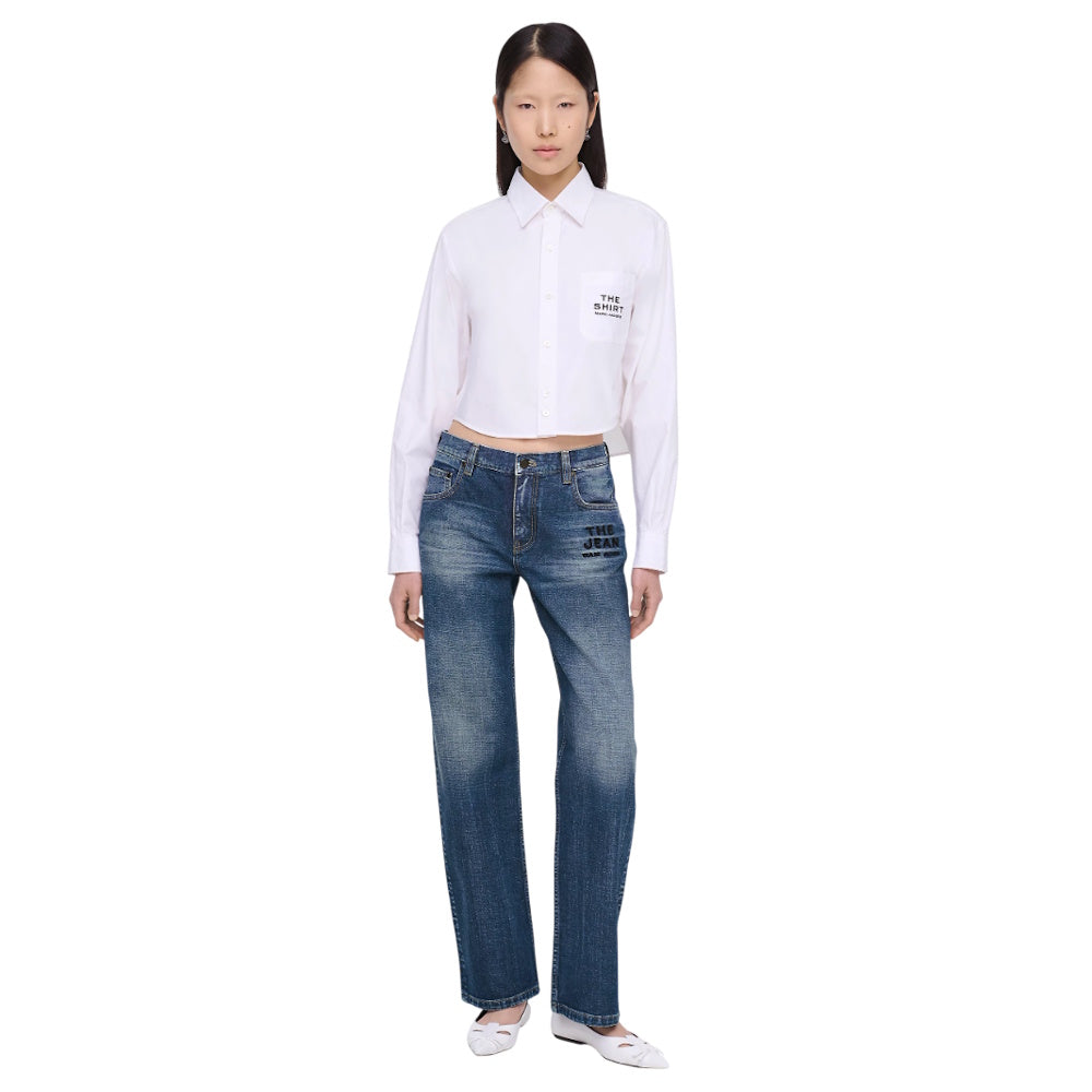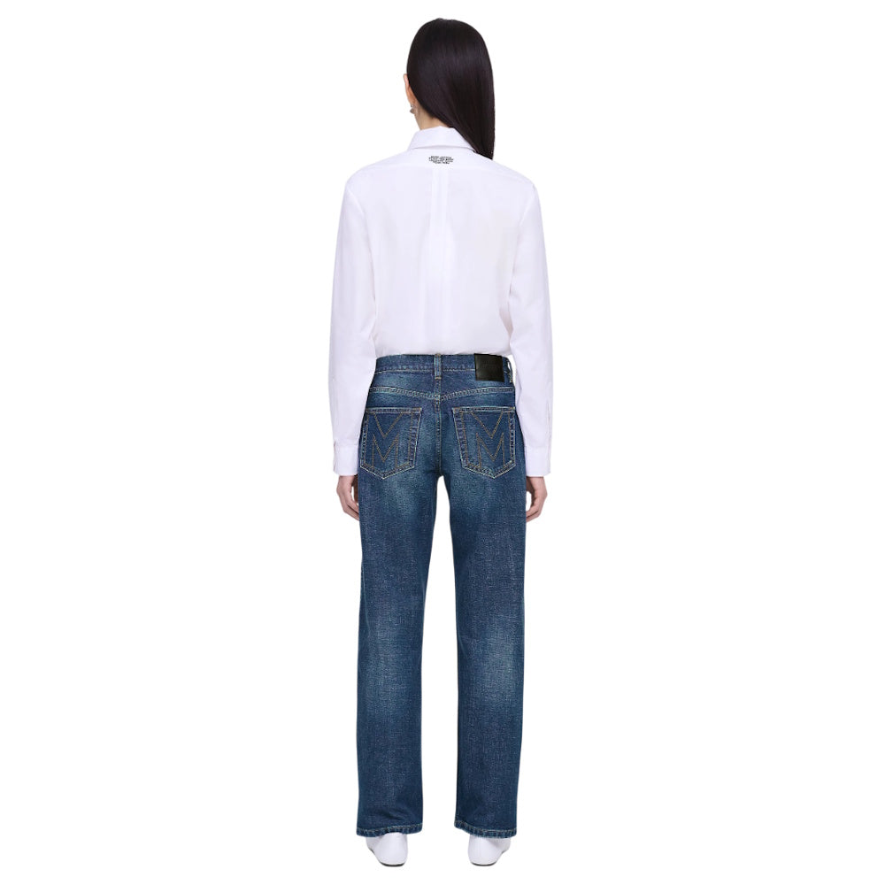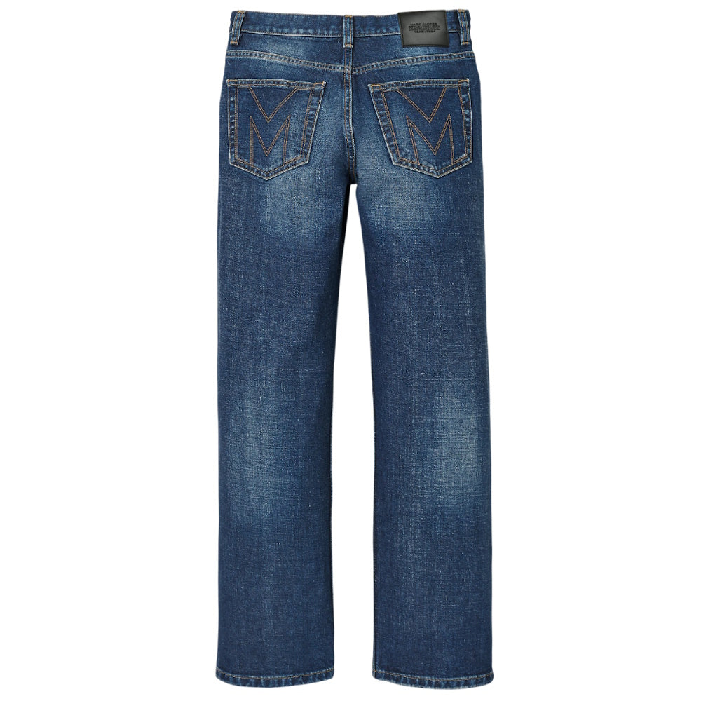 Fabricated in mid-washed denim, these retro-inspired mid-rise jeans have a relaxed, straight-legged silhouette. Featuring a zipper-button closure, our iconic back-pocket "M" stitching and signature branded detailing, these essential jeans are perfect for high-style everyday wear. Part of THE collection.