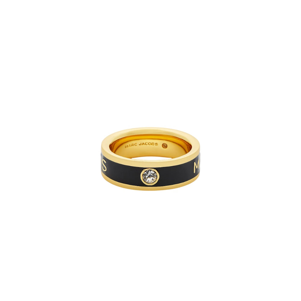A hand-painted enamel band featuring our classic brand logo, plated detailing and an elegant pave stone embellishment. An essential everyday staple for effortlessly sophisticated styling.