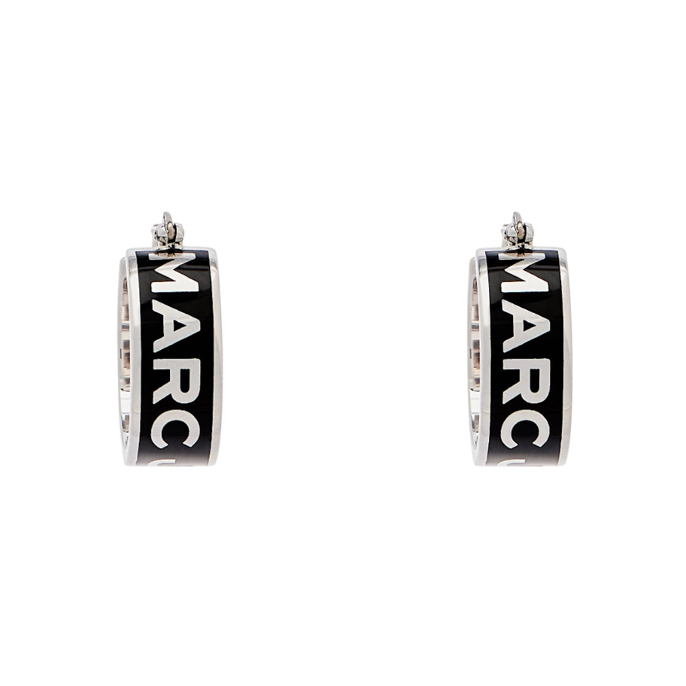 Elevate day-to-night looks with hand-painted enamel hoops, featuring plated detailing for a modern take on a classic silhouette. The hinged post closure ensures easy wear, while the Marc Jacobs logo adds a distinctive, elevated touch.
