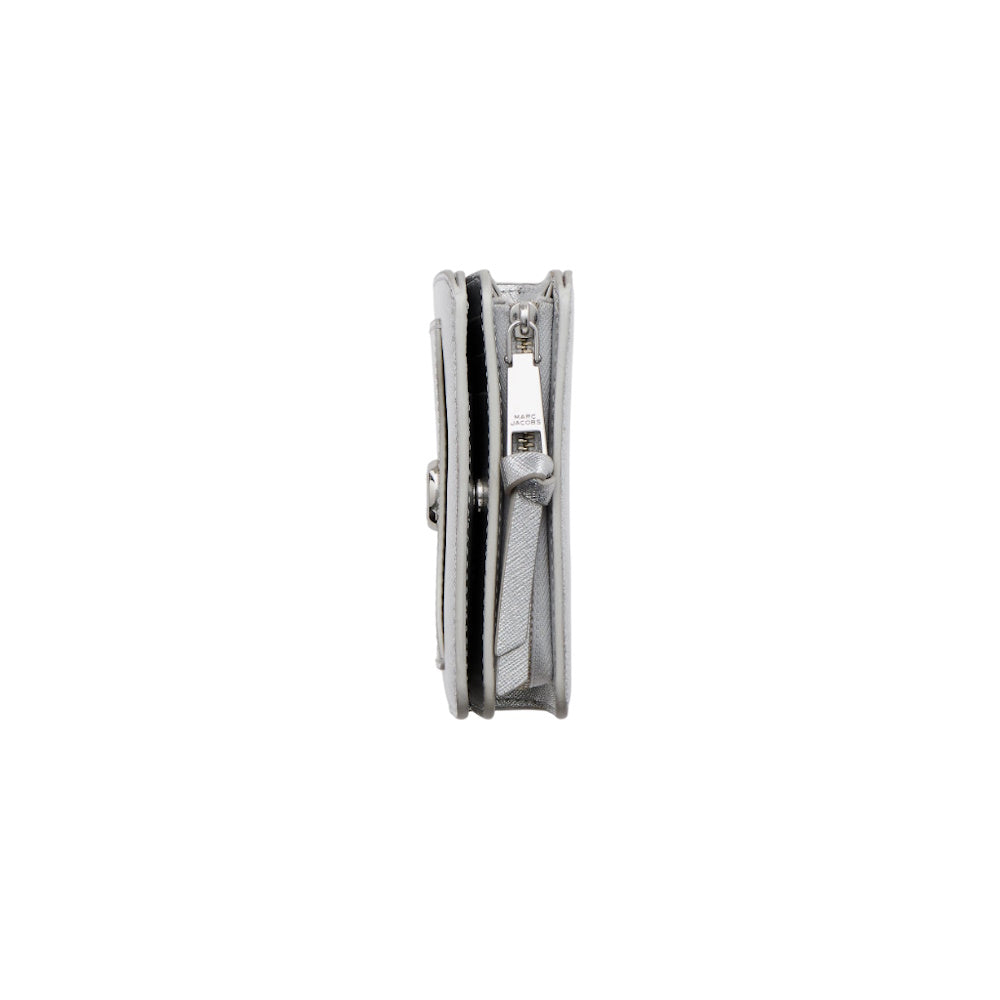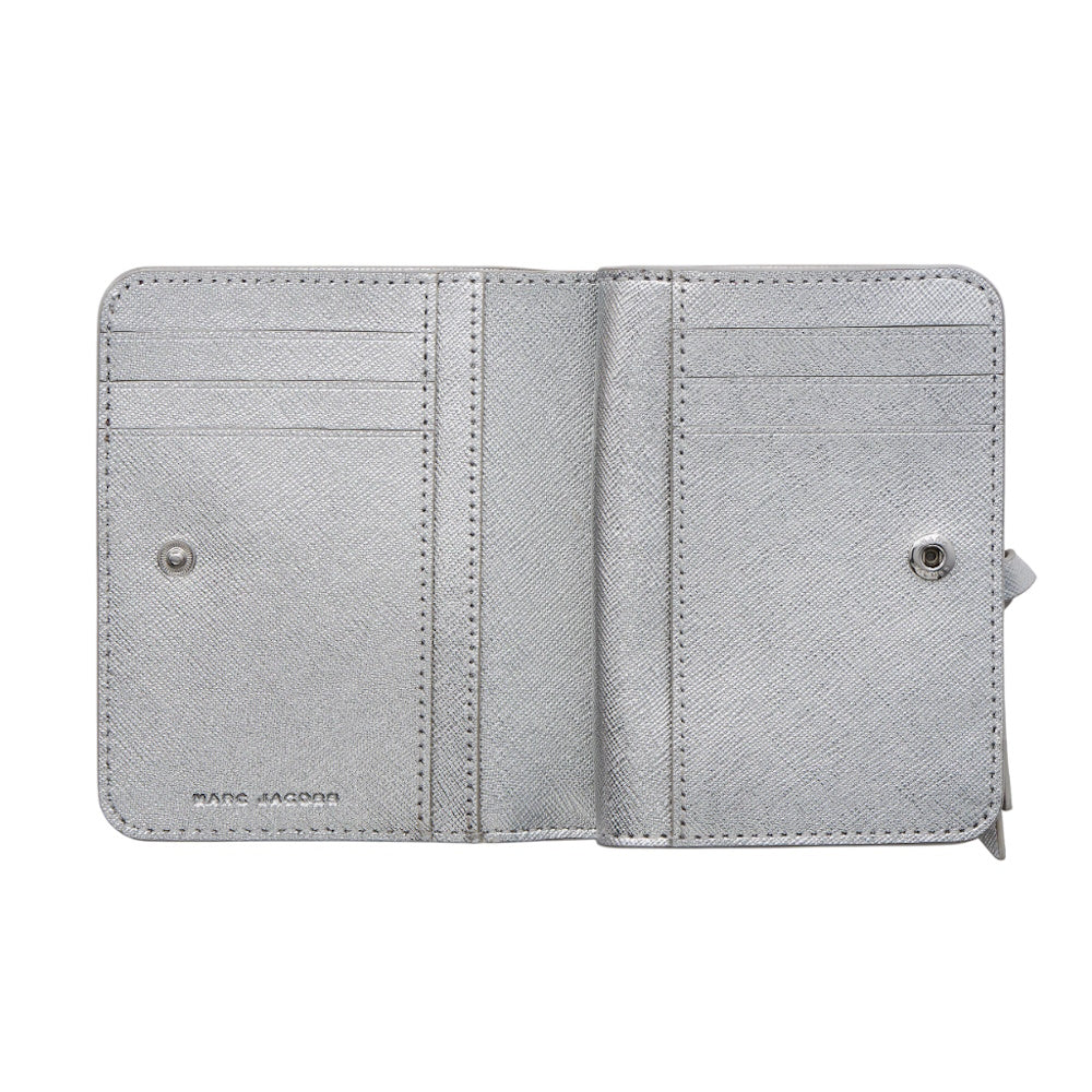 Inspired by the design DNA of our iconic Snapshot crossbody bag, the Utility Snapshot Mini Compact Wallet is crafted in metallic leather and features our signature J Marc hardware seal. It includes one front slip pocket, six card slots, one bill sleeve, four interior slip pockets, and one coin pouch with a double gusset for optimal storage and impeccable organization.