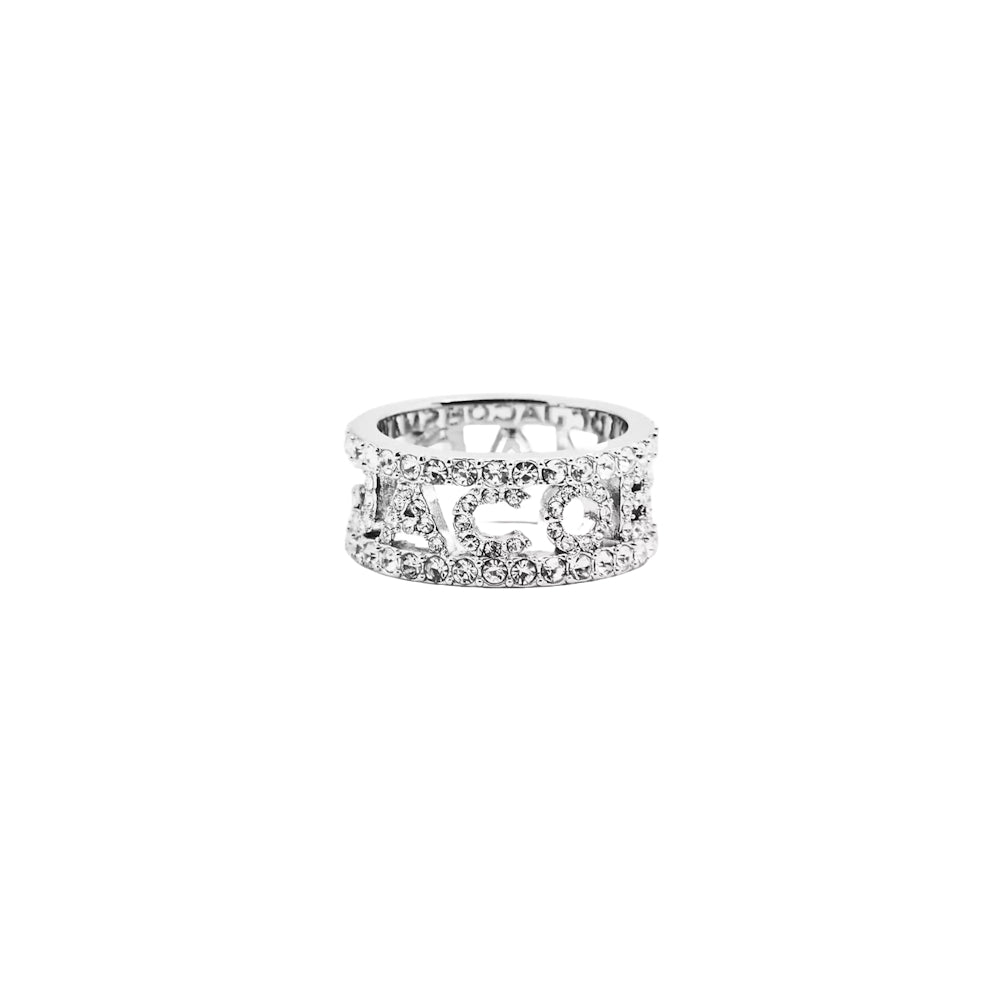 A glistening twist on our signature Monogram Ring, this version is set with crystals and wraps around to spell "Marc Jacobs".