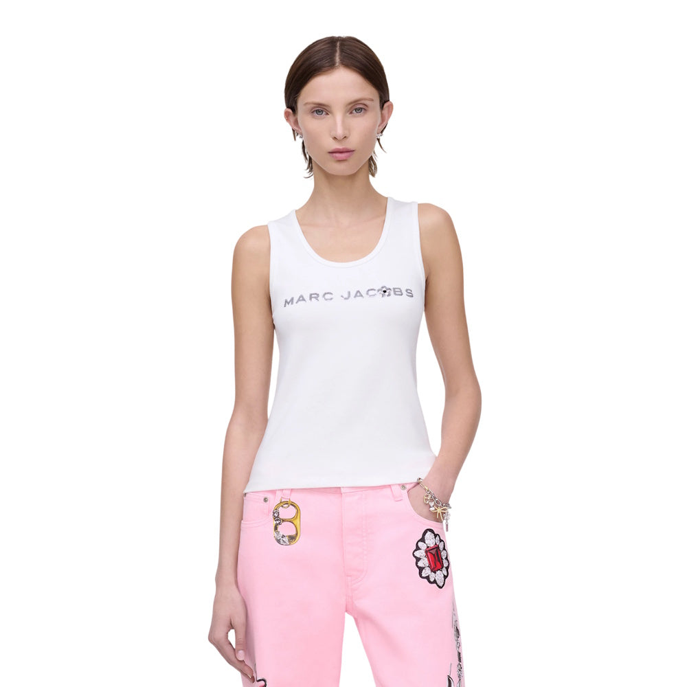 A timeless silhouette reimagined in lingerie-inspired ribbed cotton, this femininely fitted tank celebrates our seasonal sequin daisy motif with a new approach to our signature logo branding. Featuring textural sequin lettering and a dimensional crystal-embellished daisy “O,” discover effortlessly lightweight comfort with this springtime essential.