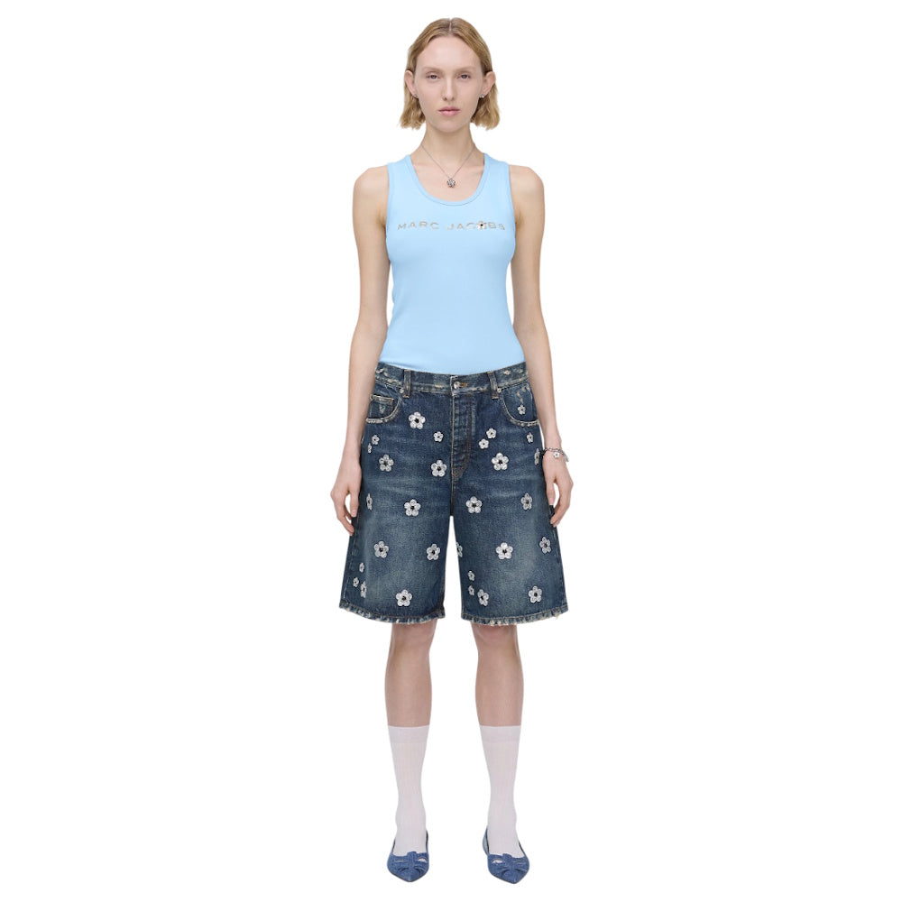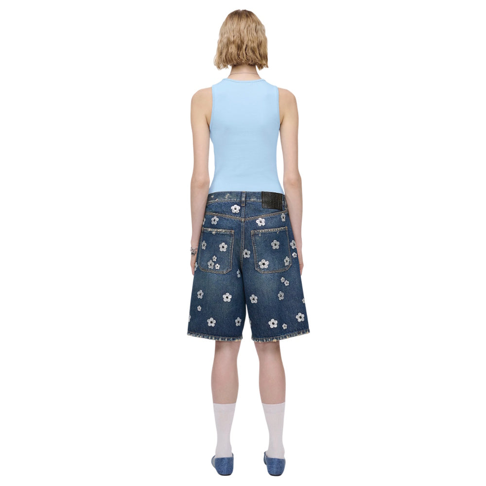 Designed with Runway-inspired masculine proportions and femininely contrasting textural sequin daisy embellishments, The Sequin Daisy Wide Leg Short features refined frayed edges, 5 pockets for optimized functionality, a button-fly closure with custom logo tack buttons and a relaxed A-Line fit. Crafted in vintage-inspired mid-wash indigo denim, pair with the Sequin Daisy Jacket for an iconic set.