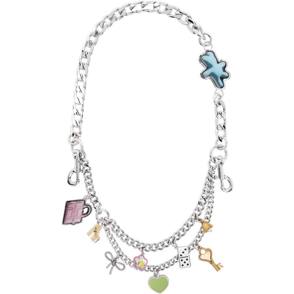 Take your favorite handbag to the next level with this multi-layered chain strap celebrating our seasonal sticker motif. Adorned with iconic Marc Jacobs themed charms (including “The” Tote Bag, the Kiki Heel, a Daisy and many more), attach to the D-rings of your beloved silhouettes for a playful, contemporary and show-stopping touch.