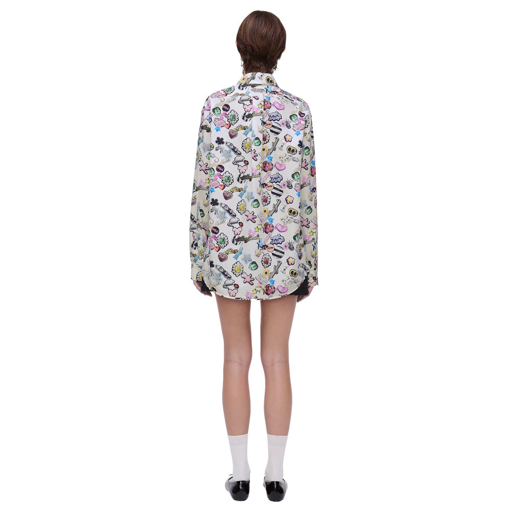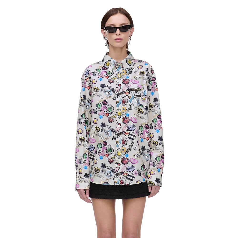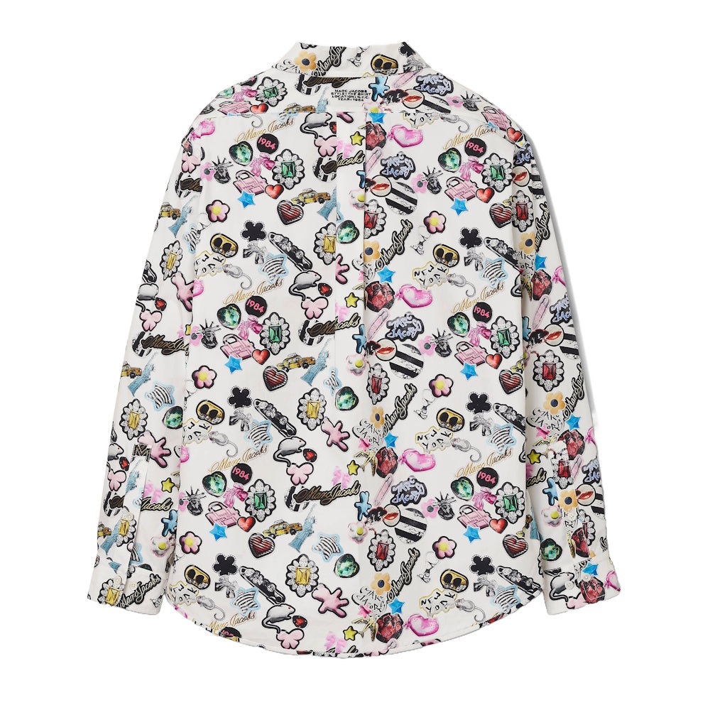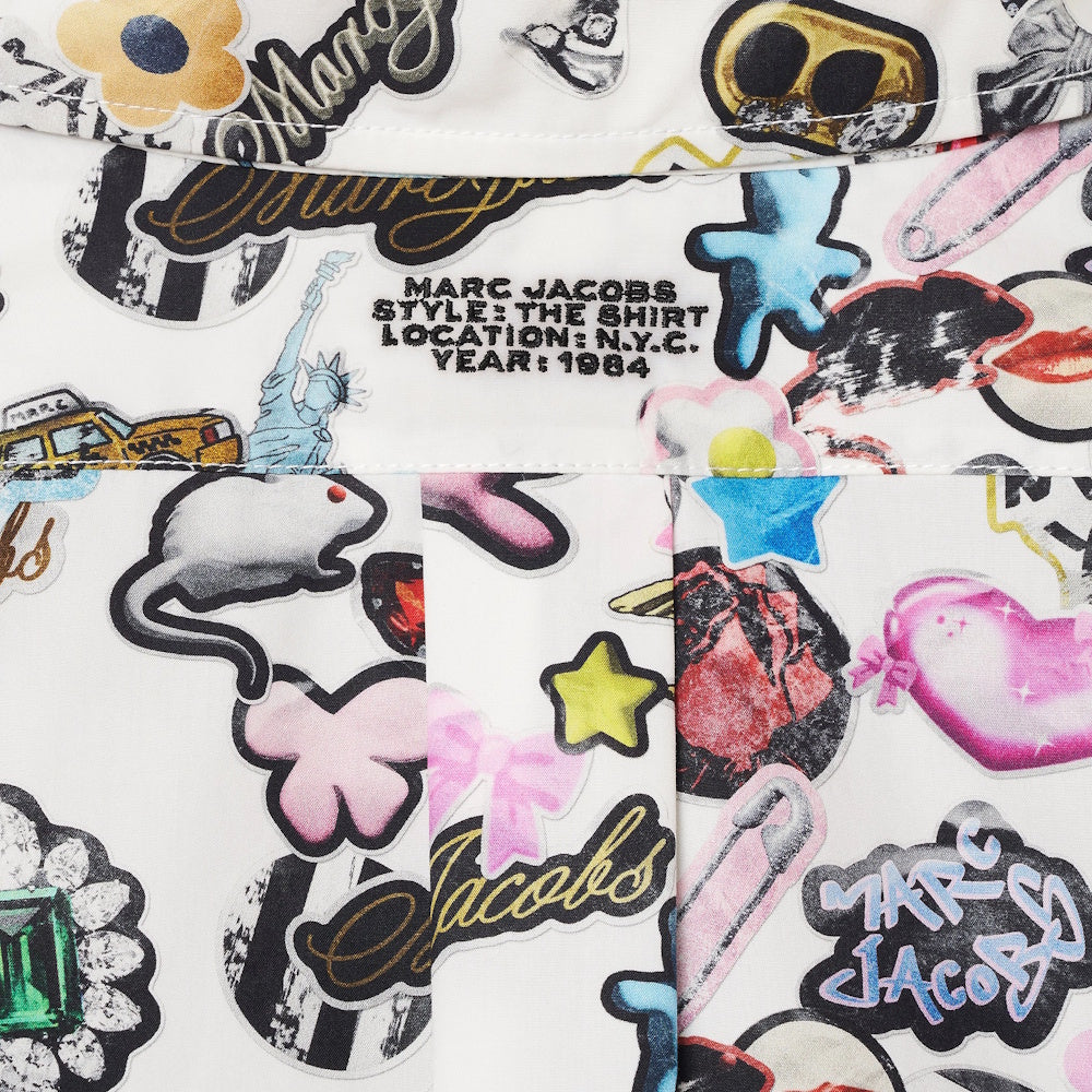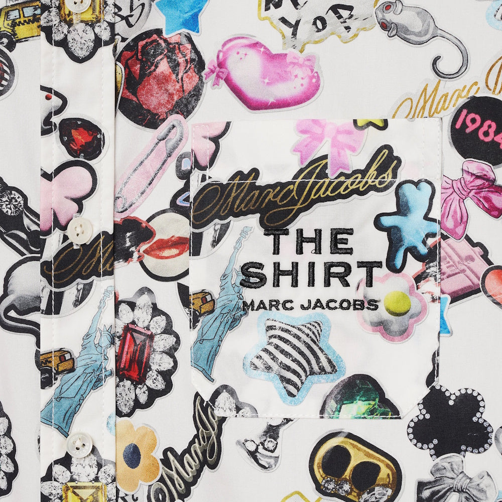 Our essential “The” Shirt in our seasonal Sticker print, celebrating quintessential Marc Jacobs themes and archival charms in a playfully contemporary sticker-inspired all over pattern. Featuring namesake embroidered branding at chest pocket, Mother-of-Pearl button closures, a shirttail hem and a standard fit, this everyday staple merges classic detailing with modern design elements for cutting-edge styling.