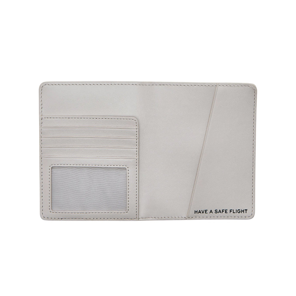 Designed to spark your next getaway, this passport case features a trompe l’oeil stack of vintage city guides from Tokyo, Paris and New York. Crafted in pebble leather and stamped with debossed namesake branding, it opens to reveal an ID window, card slots and a “HAVE A SAFE FLIGHT” message inside. One case, infinite destinations.