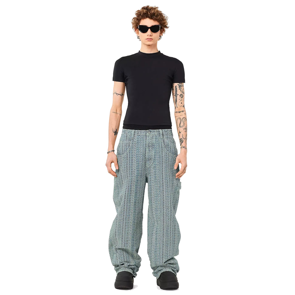 These workwear-inspired oversized jeans sit at the low waist and are cut for an intentionally slouched, oversized fit in the sun washed denim fabrication. It’s woven with the micro-scale monogram design and finished with a carpenter loop tab and the leather barcode patch.